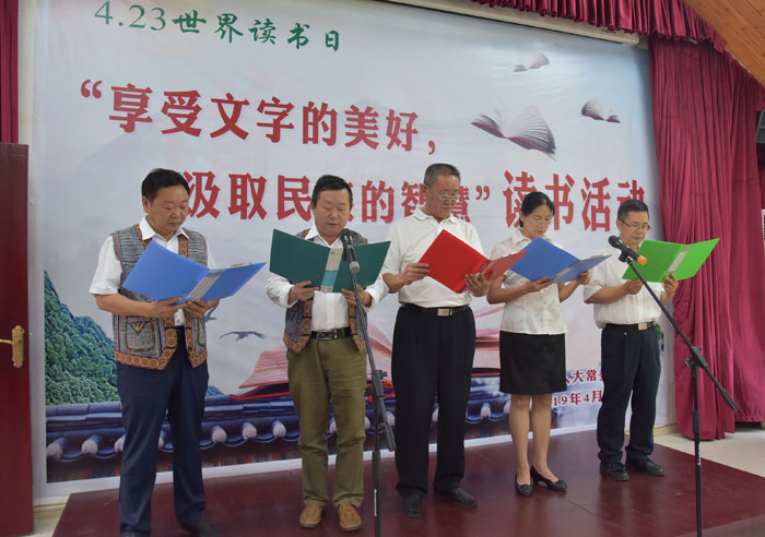 “是否有一段文字,影响你生命的成长;是否有一篇文章,直抵你心灵深处。”在舒缓的背景音乐中,办公室朗读小组上场了,他们带来的是诗朗诵《同是一颗心,同是一条根》。“在56个民族的大家庭里/各族人民手挽手/相互依存,互相促进/团结一心,共同发展/到处飞扬着欢歌/到处浇灌着民族团结之花/这花是一道美丽的风景/构成了和谐的旋律……/在抑扬顿挫的朗读声中,大家仿佛在壮乡苗岭、瑶山彝寨中行走,听山欢水唱,看莺歌燕舞、繁花似锦。