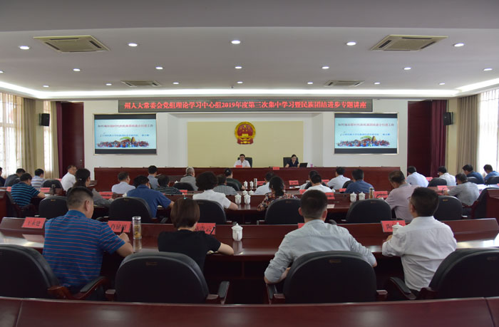本站讯 4月24日,州人大常委会党组理论学习中心组2019年度第三次集中学习暨民族团结进步专题讲座举行。云南民族大学博士、教授、硕士生导师杨文顺作专题讲授。