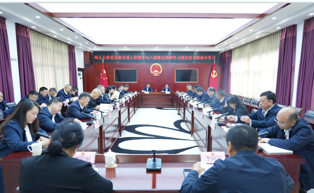 为推动学习教育扎实开展,州人大常委会成立了以党组书记为组长的学习教育领导小组,并设立学习教育工作专班,抽调专人负责日常事务。常委会党组、机关党组将开展学习教育作为当前首要政治任务,通过召开常委会党组(扩大)会议,及时传达学习相关文件及会议精神,切实统一思想认识;同时,召开专题会议进行部署,结合人大工作实际,研究制定了《深入贯彻中央八项规定精神学习教育任务清单》,为学习教育开展提供了精准指导,并将学习教育纳入年度党建工作重点任务,构建起“一把手”牵头抓总、班子成员分工负责、各专工委室协同推进的工作格局,有效确保学习教育有人管、有人抓、见实效。