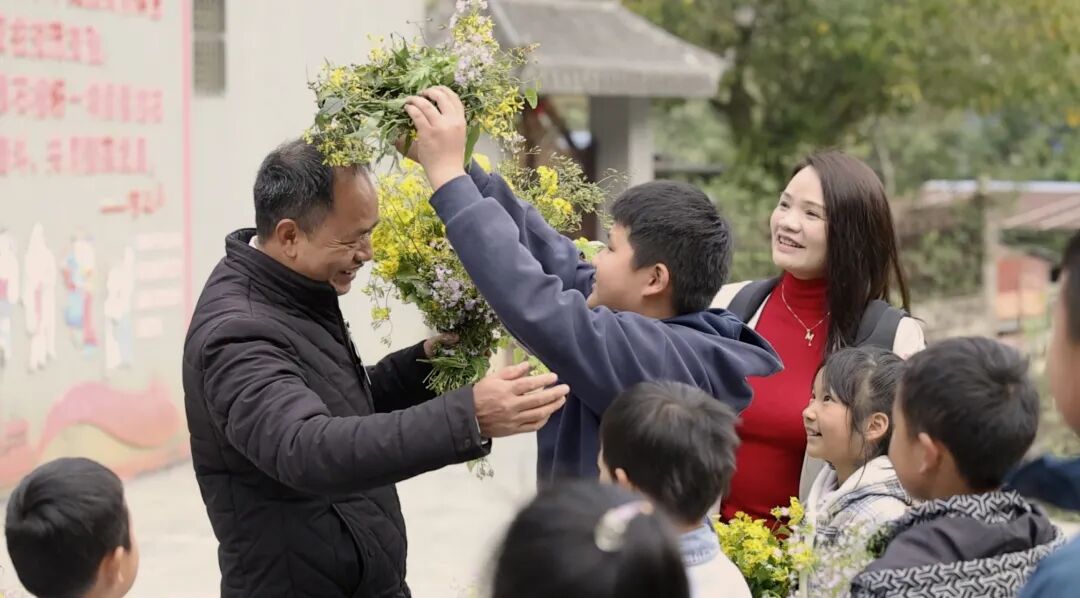 “农老师!农老师回来啦!”清脆稚嫩的呼喊划破山间宁静。孩子们手捧采摘来的野花,仰着红彤彤的小脸围上来:“农老师,这是我们给您编的花帽,您戴起来真好看!我们天天都盼着您回来!”