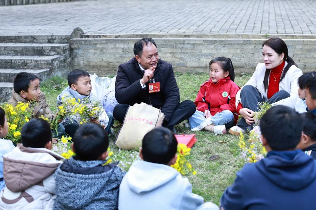 谈及此次参加全国人代会的经历,农加贵语气里满是激动与感慨,也藏着几分难忘的紧张。“这是我第四次参加全国人代会,却是最紧张的一次。”他笑着和孩子们分享到北京参会的感受,“尤其是走上‘代表通道’时,人群中、镜头前,我紧张得手心冒汗、感觉浑身都在发抖。为了稳住心神,我悄悄攥紧拳头、用力掐着大腿给自己打气,心里一遍又一遍默念:一定要把基层的声音、把山里孩子的期盼,带到人民大会堂。”