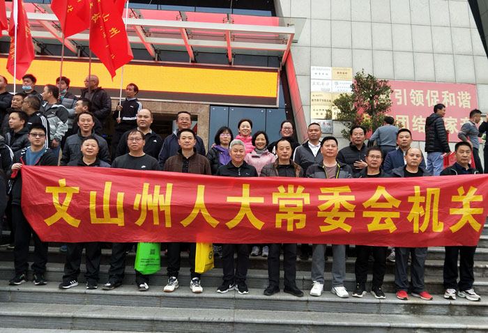 2020年12月31日上午8点30分,文山市第一高级中学校园内人声鼎沸,文山州、市各行政机关、企事业单位干部职工及文山城区部分群众在此集中,参加元旦全民健身长跑(走)活动。上午9点,随着发令枪声一响,州人大常委会机关干部职工跟随大部队途经文山市人民政府→凤凰路→文山州公安局→凤凰酒店(华龙东路),跑到文山州博物馆,全程约4公里。