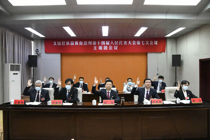 又讯:7月12日下午4时30分,文山州第十四届人民代表大会第七次会议主席团举行第三次会议。