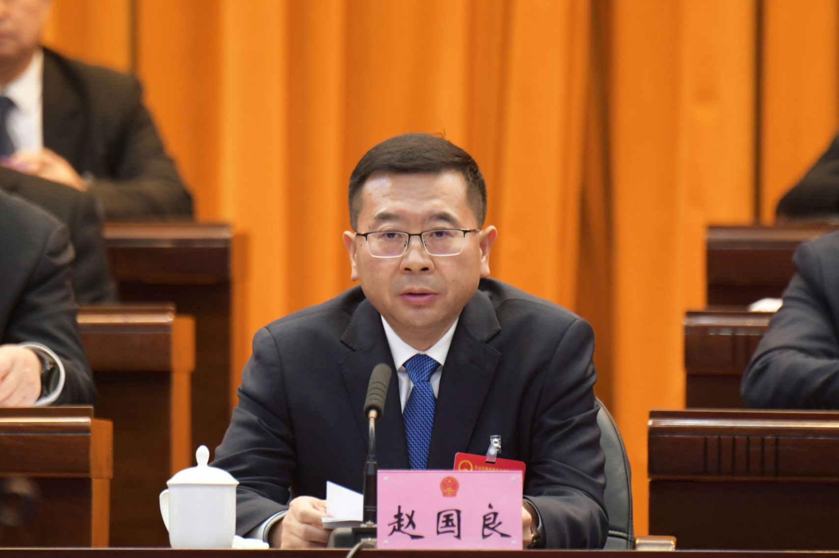 大会主席团常务主席、第四次全体会议执行主席赵国良在闭幕会上讲话,大会主席团常务主席、第四次全体会议执行主席王毅主持闭幕会。