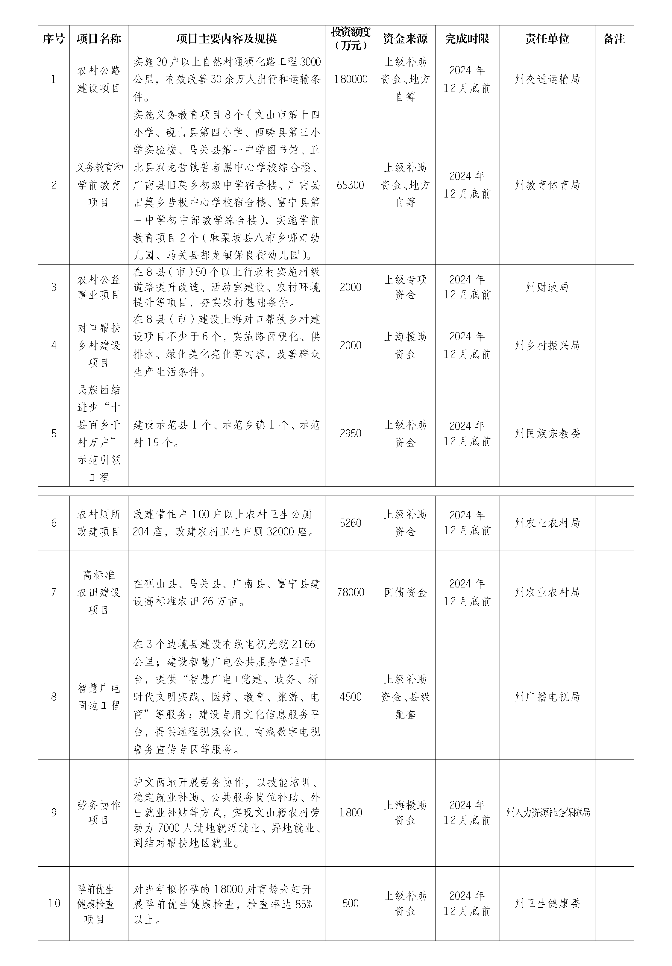 文山州2024年度重大民生实事项目