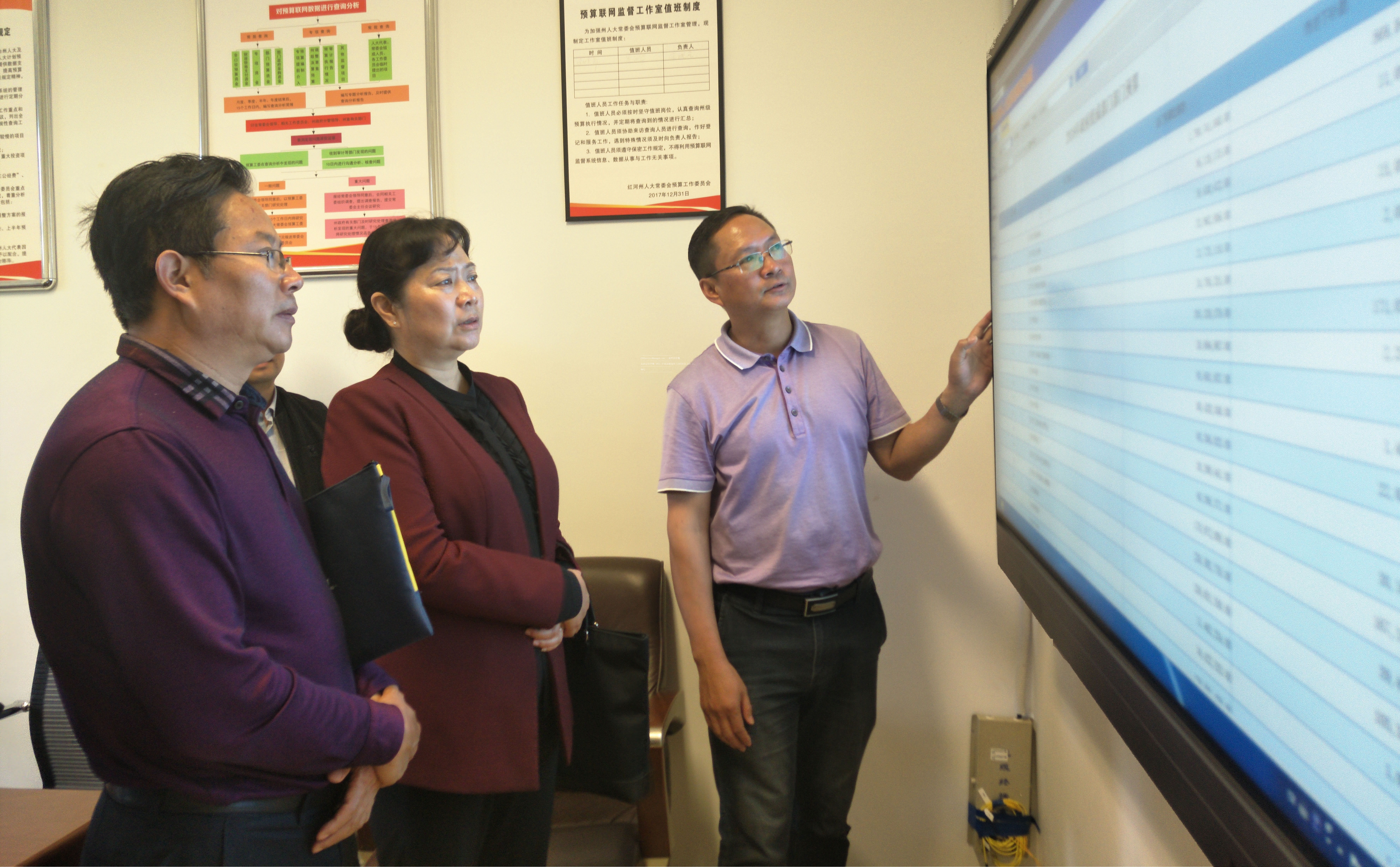 考察组在红河州人大常委会观看预算联网监督系统操作演示