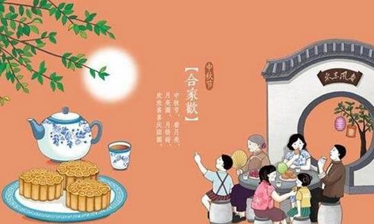 满月飞天镜,团圆家家情。又到一年中秋临,人间添吉庆。金菊怒发桂花香,佳节满温馨。喜迎中秋送祝愿,合家幸福乐无尽,永远有好运!