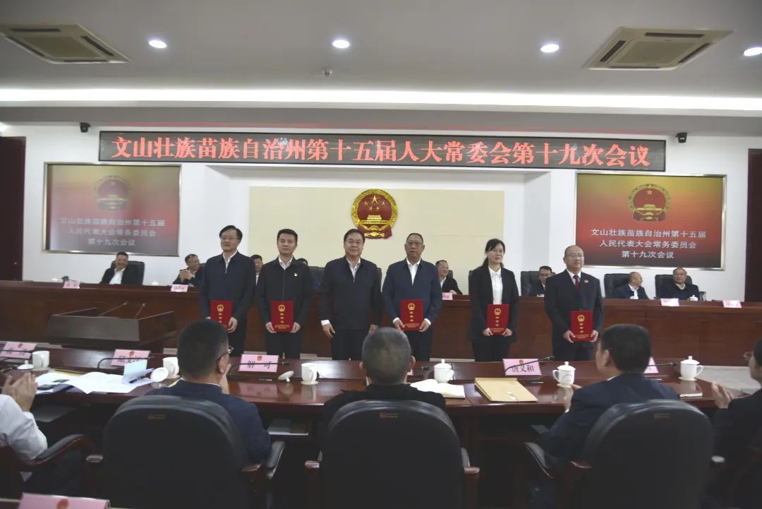 会议表决通过了《文山州人民代表大会常务委员会议事规则(修正草案)》;表决通过有关人事事项,王毅为新任职人员颁发任命书,新任职人员向宪法宣誓并作任职承诺。